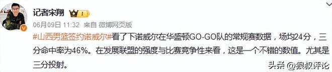 山西男篮另外一名外援为早早确定的诺威尔。他在华盛顿GO-GO队的常规赛数据,场均24分,三分命中率为46%。在发展联盟的强度与比赛竞争性来看,这是一个不错的数值。相关资讯