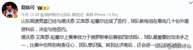 德沃恩·艾库恩-珀塞尔加盟山东男篮艾库恩-珀塞尔今年32岁,身高1米98,司职小前锋。曾以双向合同短暂效力过丹佛掘金,也打过发展联盟,不过生涯大多数经历是在欧洲联赛。2024-25赛季,他效力于VTB联赛的喀山尤尼克斯,出战56场比赛,场均25分钟能贡献15.9分3.1篮板3.1助攻1.2抢断,三分球命中率32.1%,是球队的得分王。目前,山东男篮的外援有鲍威尔、克里斯、艾库恩-珀塞尔。