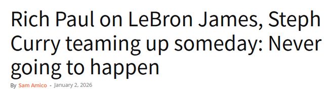 北京时间1月3日,詹姆斯的经纪人里奇-保罗明确表示,他的客户詹姆斯从湖人队交易至勇士队一事,目前不存在任何可行路径。