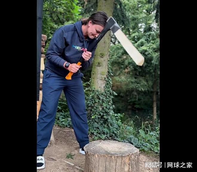 最后来猜一猜认一认。下面这张图片是一位球员在学习劈柴。不作提示,您能认出她是谁吗?