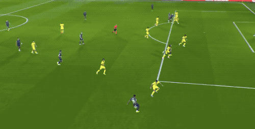 上半场补时第3分钟,巴黎圣日耳曼后场断球,立即发动快速反击,接到阿什拉夫的传球,杜埃上演完美世界波,梅开二度。