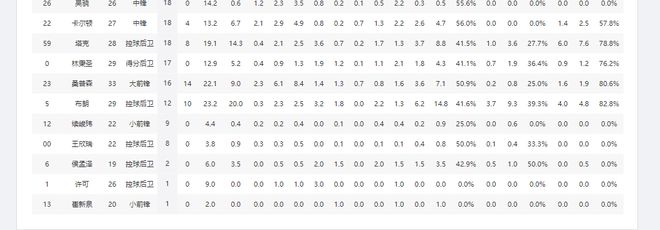 18轮过后,关键时刻数据方面,北京男篮四名外援中,杰曼以累计20分的关键得分表现,位列队内外援首位、联盟第10位。